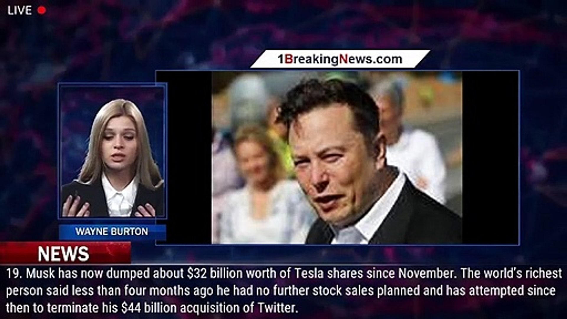 Elon Musk Sells Another 6 9 Billion Of Tesla Stock Ahead Of Twitter Trial 1breakingnews Com Video Dailymotion